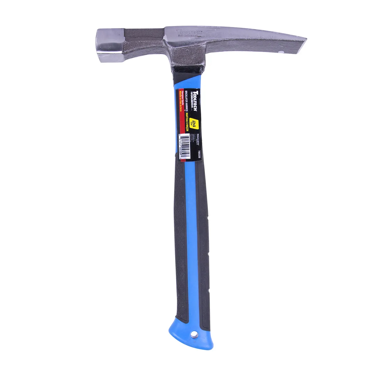 The Tooltech workbench bricklayer hammer steel head; fiberglass handle.