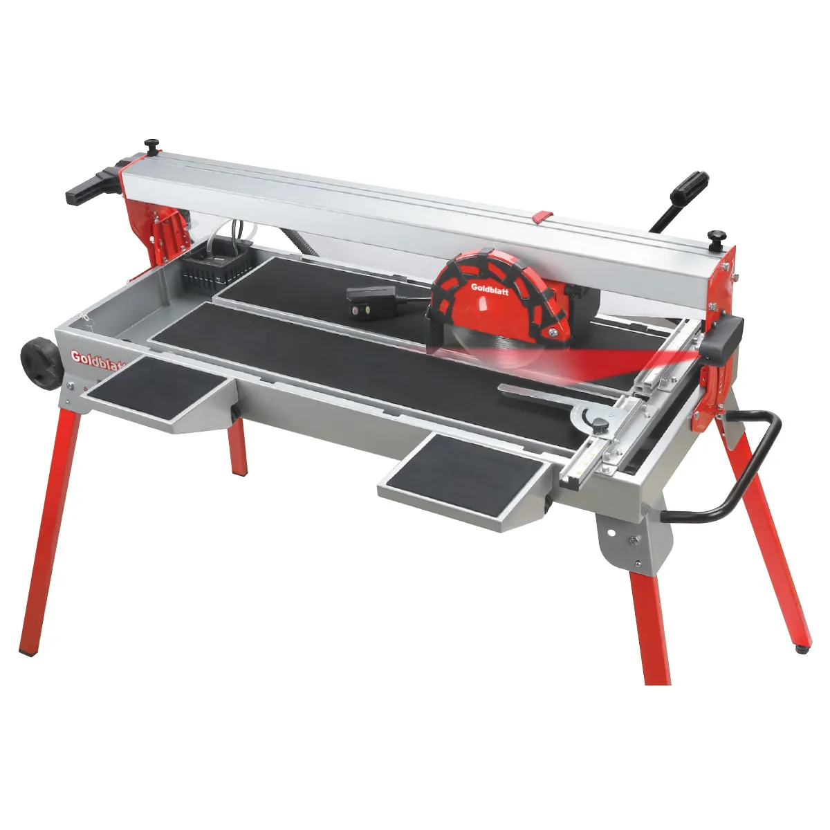 Building trade professionals, who build our homes and countries demand quality, innovation, and SATISFACTION from the tools they use every day. Goldblatt tool company has been helping meet that demand for over 130 years. Goldblatt tool company designs, manufactures, and distributes high quality trade tools in the masonry, concrete, drywall, tile, and paint tool categories to a worldwide market. The Goldblatt 8-in Bridge Saw is no exception. From its 8-amp motor, laser guide for accurate cuts, innovative water transport system, adjustable pivoting rail right down to its heavy-duty fold-up stand, every feature has been thought of to ensure all your projects are completed in the fastest and most efficient way.
