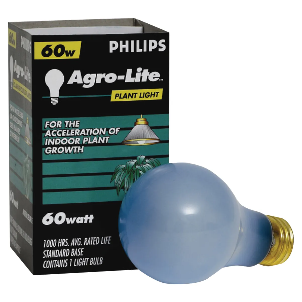 This Philips Agro 60-Watt A19 Plant Light Bulb is ideal for use wherever natural sunlight is not available and can be used in indoor portable fixtures. A19 Agro Plant Flood Light Bulb features a medium base and a A19 shape that is compatible with standard household fixtures. This plant flood light provides light for healthy indoor plant growth.