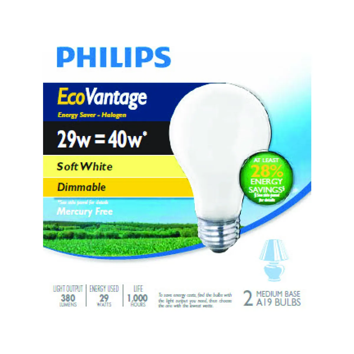 The philips halogen energy saver 29-watt a19 household light bulb is dimmable allowing you to change the mood of a room by adjusting the light.