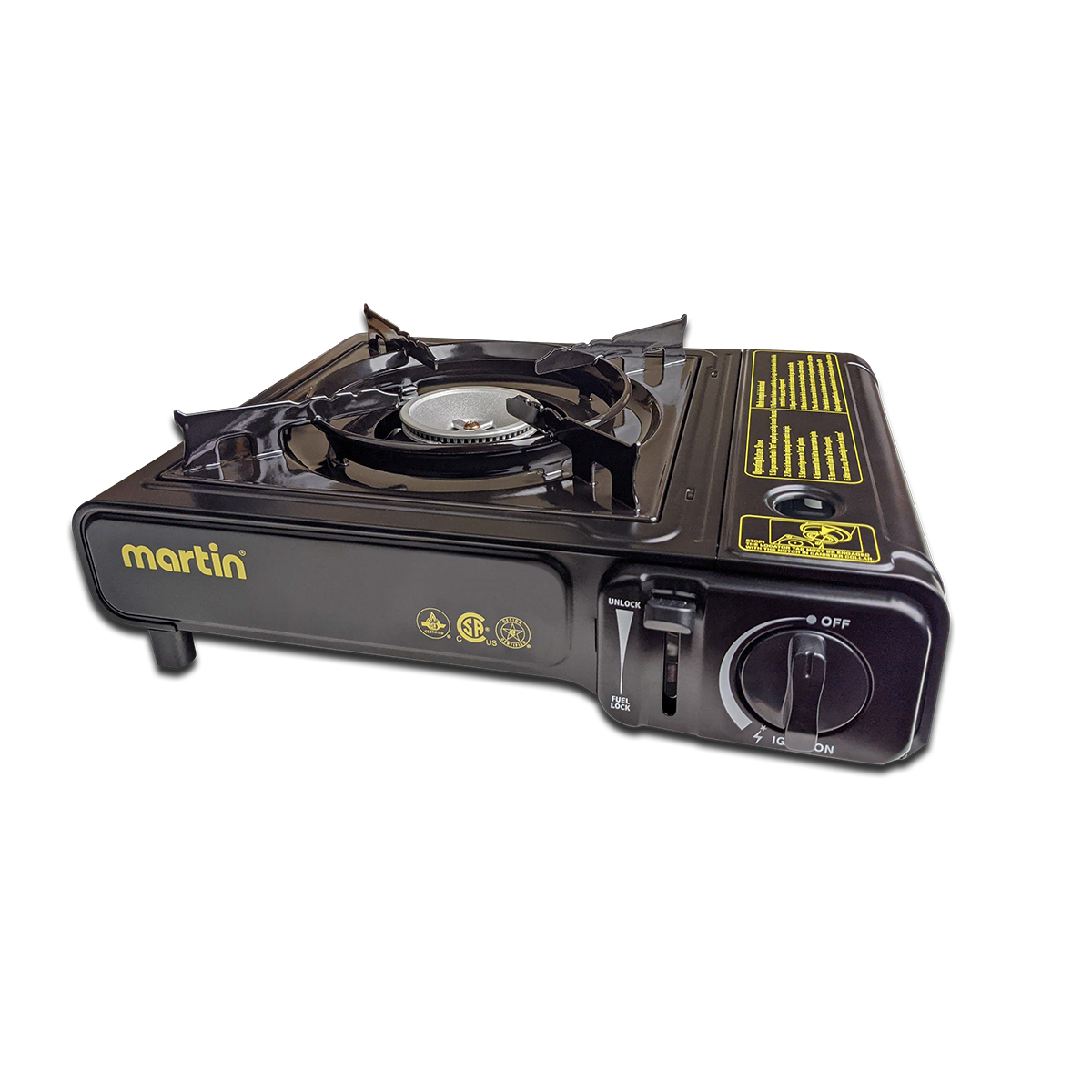 The Martin Portable butane stove gives you all the cooking poweryou'll need for your outdoor picnic, camping or RV use. Stores in a practical carrying case and is handy to use when and where you need it.