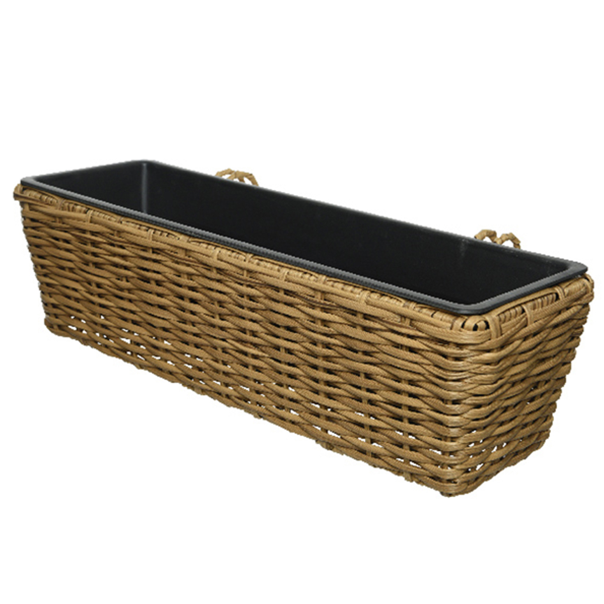 Camille Polyrattan Rectangular Planter 23.5 x 7.5 x 6.9in Light Brown