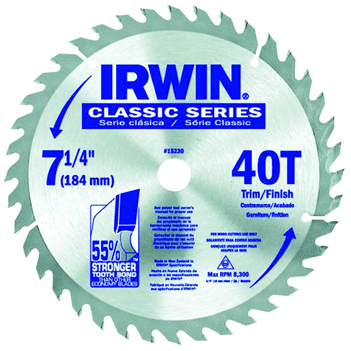 The best value for an economy blade. Corrosion resistant coating helps prevent rusting. Precision ground teeth for smooth; accurate cuts. Slots for Straighter Cuts. 7-1/4in diameter; 40 teeth; 5/8in arbor. 20 deg Hook angle.