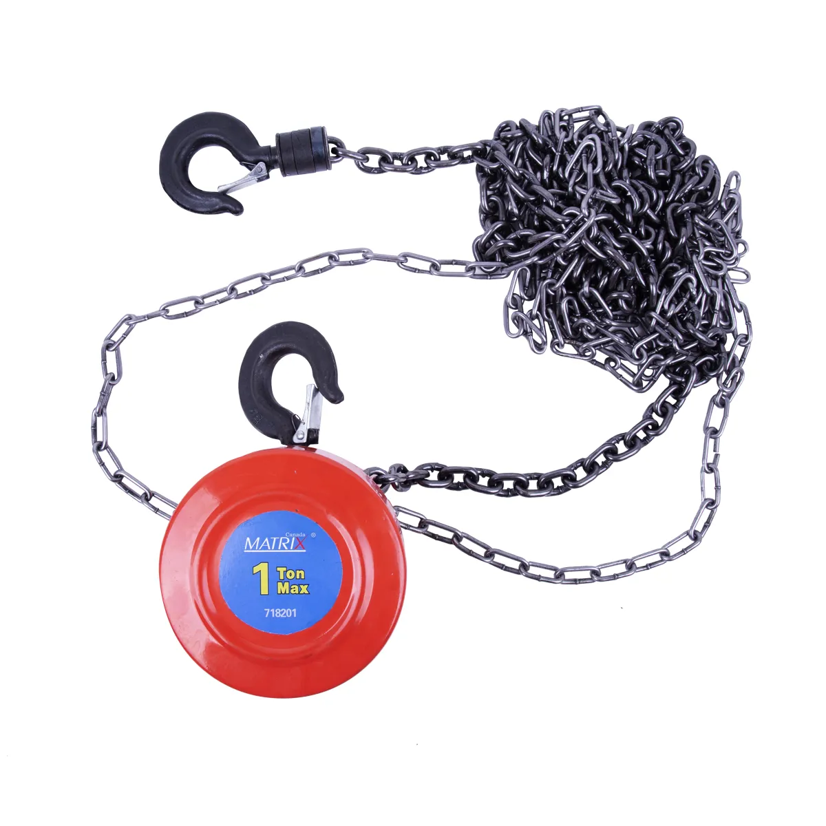 Matrix chain hoists by Toolway are designed with hardened steel chains and forged swivel hooks with latches making them tough and durable for all your hoisting needs. Perfect for work sites and garages.