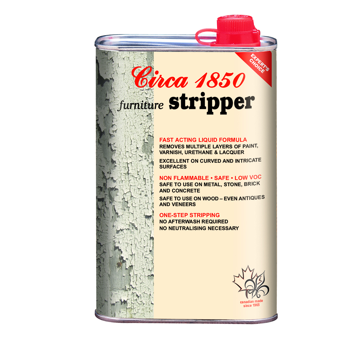 Circa 1850 furniture stripper quickly and easily strips off multiple layers of oil; latex and epoxy paint; oil and latex varnish; polyurethane; moisture cure; lacquer and shellac. It does not require any after wash or neutralizing. Safe to use on fine furniture – will not raise wood grain; harm most glue joints or veneers; or damage patina. May soften plastic and fiberglass. Circa 1850 furniture stripper is non-flammable and almost odorless.