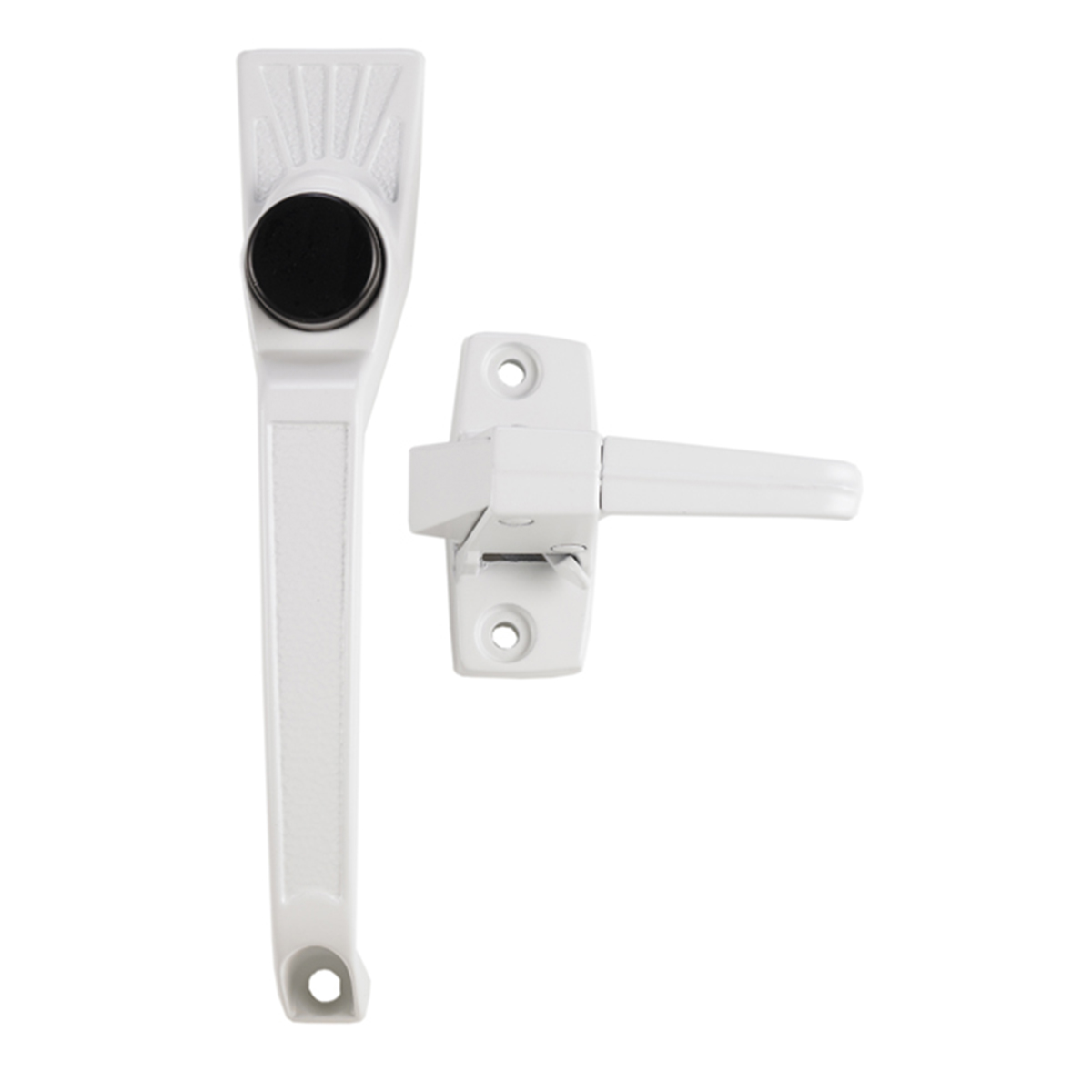For all out swinging doors 1 in to 2 in thick. Mounts 1-3/4 in center to center. Inside latch & solid strike included. Converts to locking unit with Ideal's SK8.