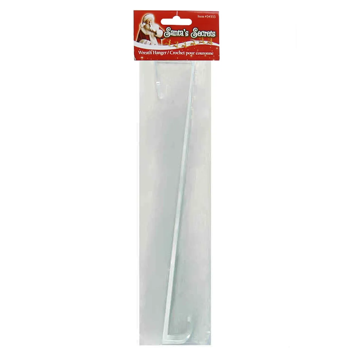 • Clear transparent wreath hanger is 16in in length for hanging wreaths on door.