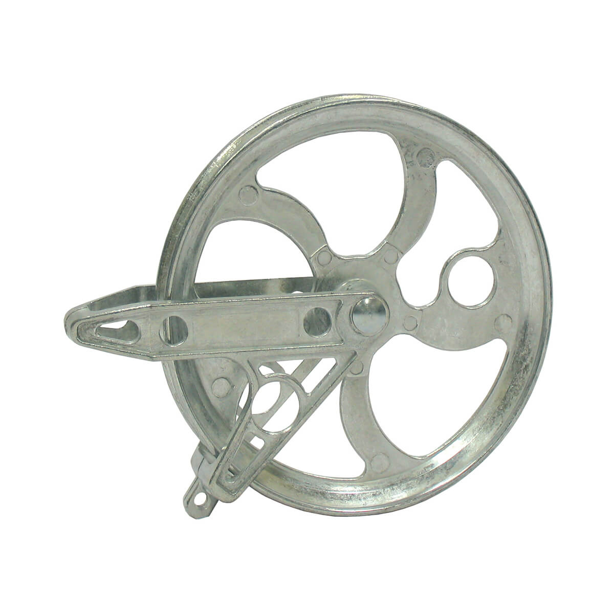 Strada's Sturdy and rustproof 6-1/2" Aluminum pulley with 'V' type metal bracket for rope or cable wire.