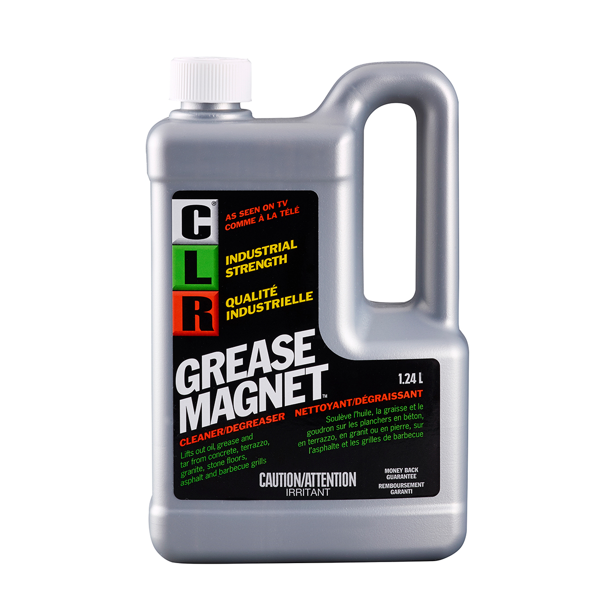 CLR Grease Magnet is a fast-acting; powerful cleaner formulated to quickly clean stubborn oil; grease and tar. Industrial strength cleaner lifts out oil; grease and tar from concrete; terrazzo; granite; stone floors; asphalt and barbecue grills. For use on factory and garage floors; pool decks; sidewalks; driveways; machinery; motors; printing presses and more.