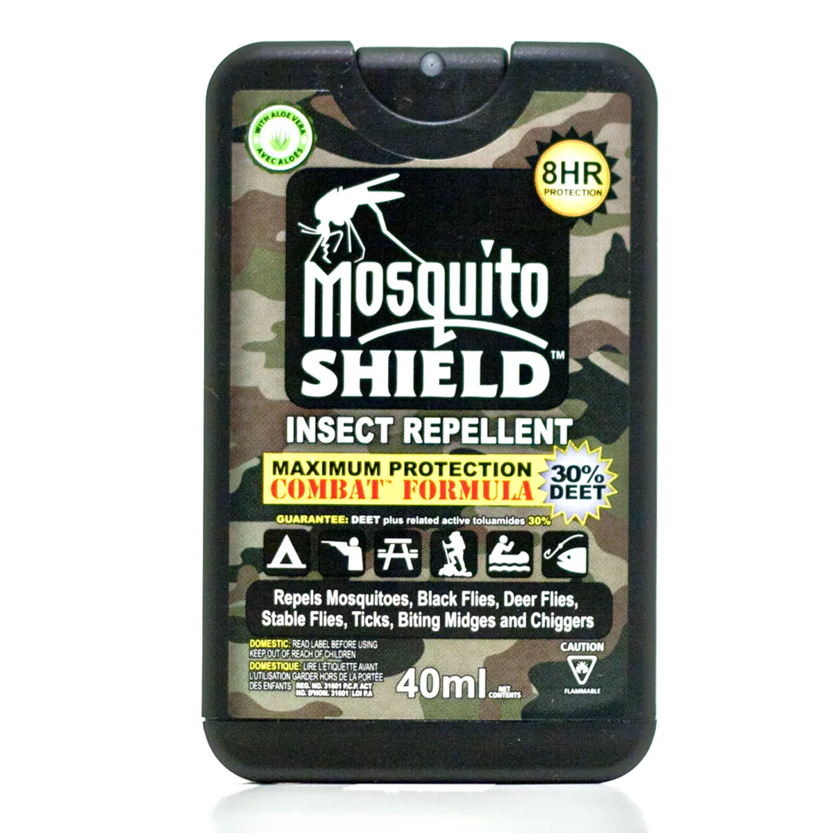 Unleash the power of mosquito shield™ combat 6-hour 30% deet wallet size insect repellent pump spray; formulated for those traversing even the most rugged terrain; we use the highest quality ingredients to provide superior protection against ticks; mosquitoes; black flies and more! Get outdoors & have fun! Choose mosquito shield™ and embrace insect-free freedom. Keep out of reach of children and pets. Read the entire label before use.