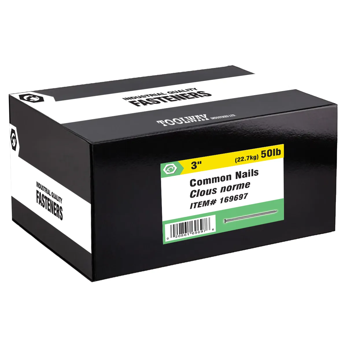 • 50lb (22.7kg) Common Nails Bright 3in