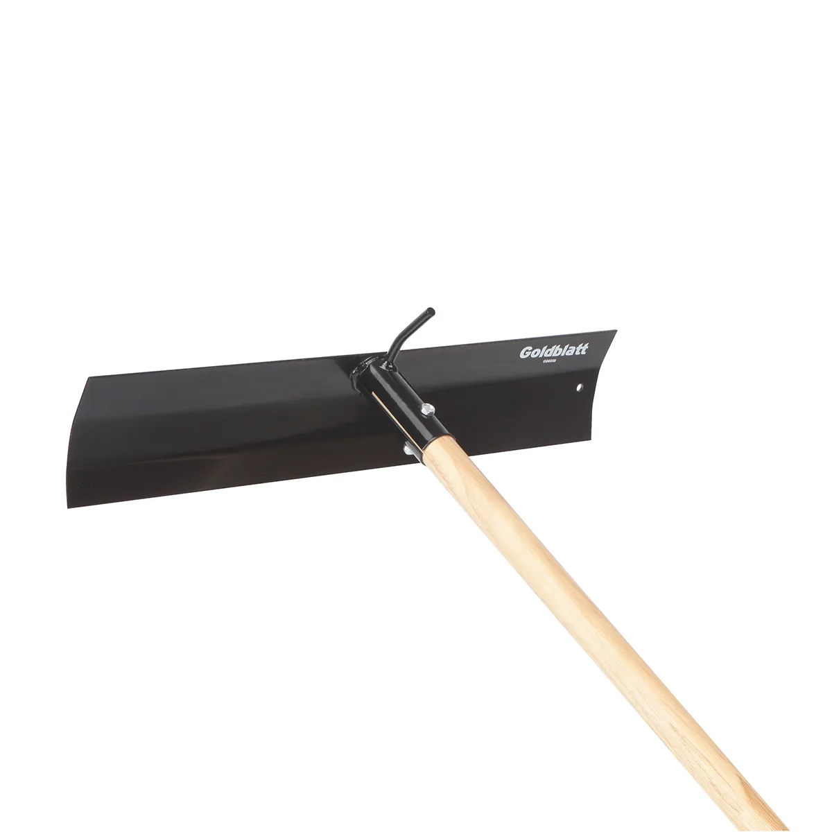 Concrete steel placer with hook 14 gauge steel reinforced blade length u-rib stiffening channel 2 full length stiffening breaks all weld construction 19-1/2 x 4 inch; 54 inch handle included. The heavy-duty 12-gauge cold-rolled steel blade of our steel concrete placer allows you to achieve the proper working angle, which makes grading, smoothing, and spreading concrete effortless. A sturdy steel ferrule keeps the blade securely in place.