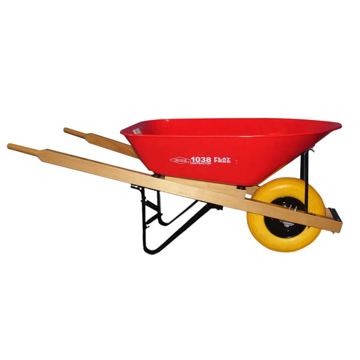 Contractor Wheelbarrow 6 cu.ft Steel Tray Flat Free Tire Wood Handle