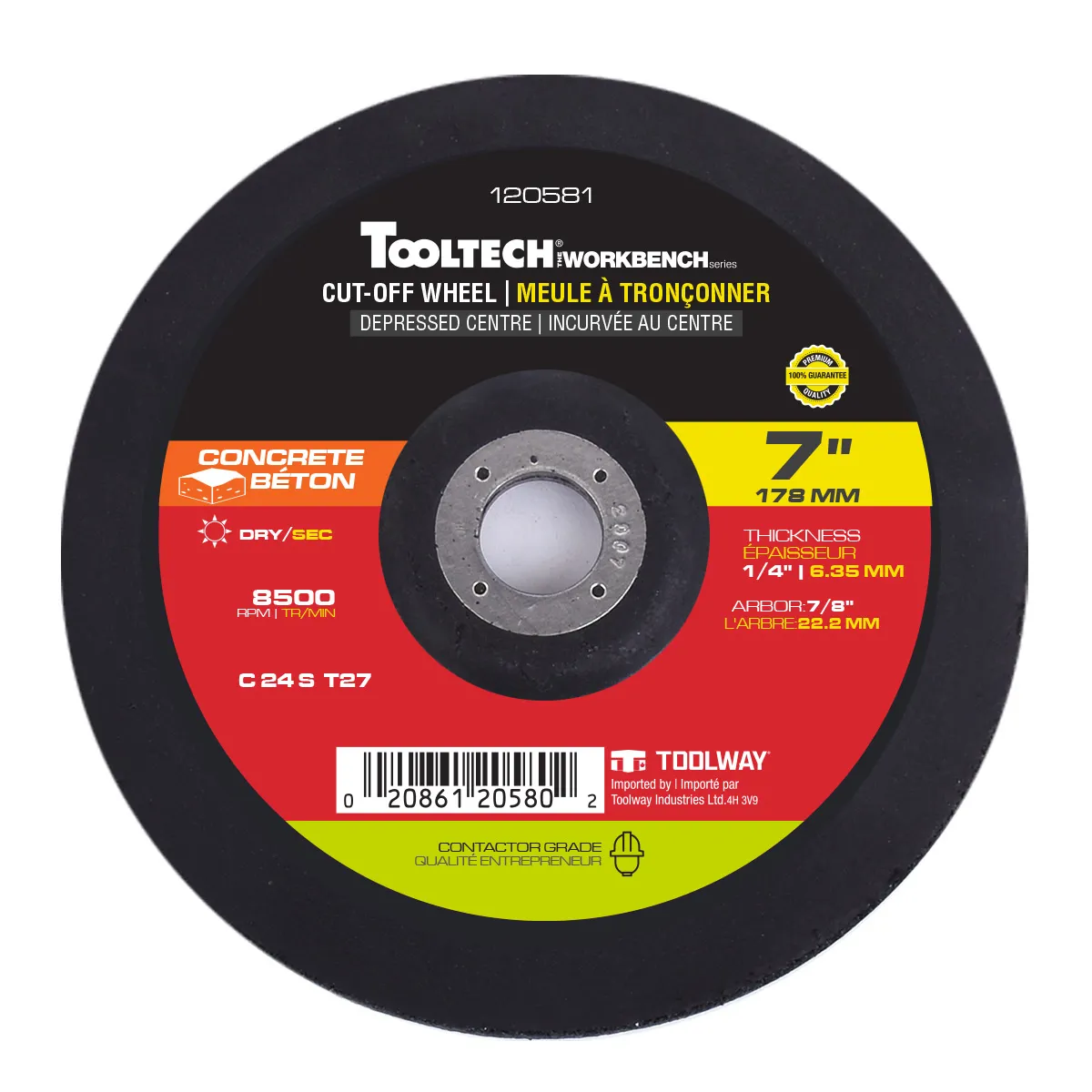 Cut-Off Wheel Abrasive 7in x 1/4in x 7/8in Concrete