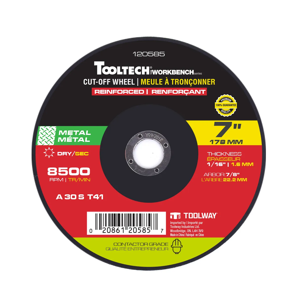 Cut-Off Wheel Reinforced Abrasive 7in x 1/16in x 7/8in Metal