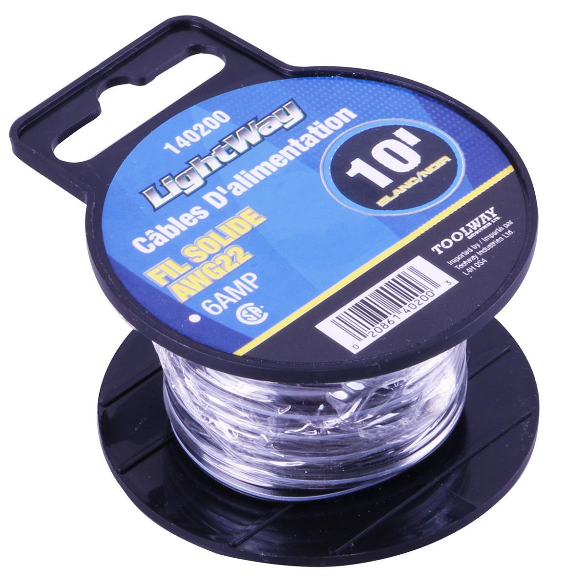 DC Power Cable Black/White 10ft x 22AWG 6AMP