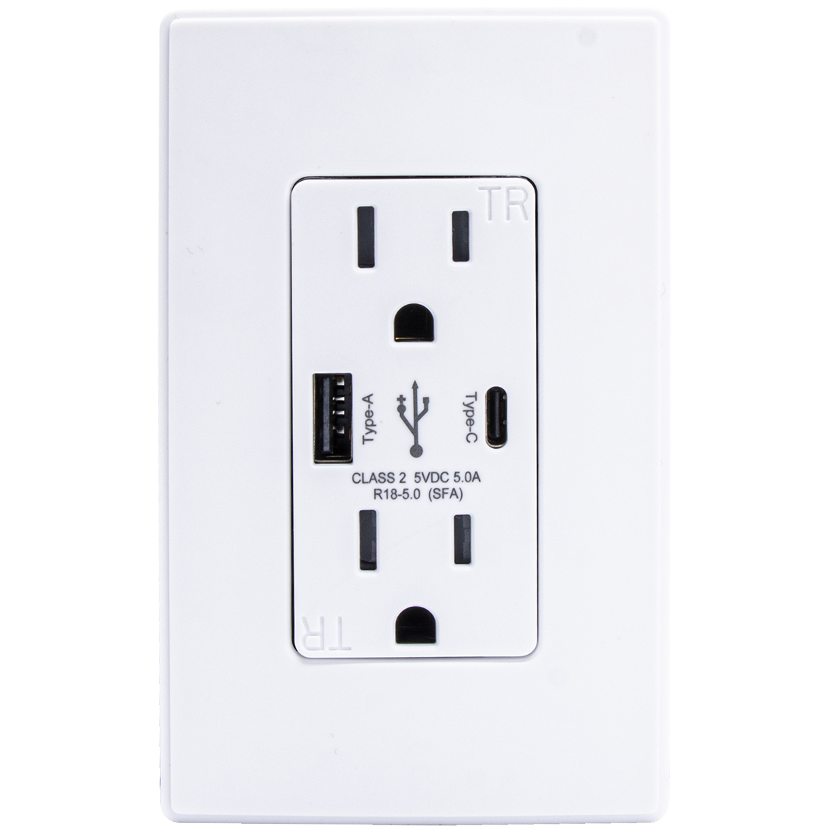 Decora Duplex Receptacle With USB Port Type A&C 15Amp White