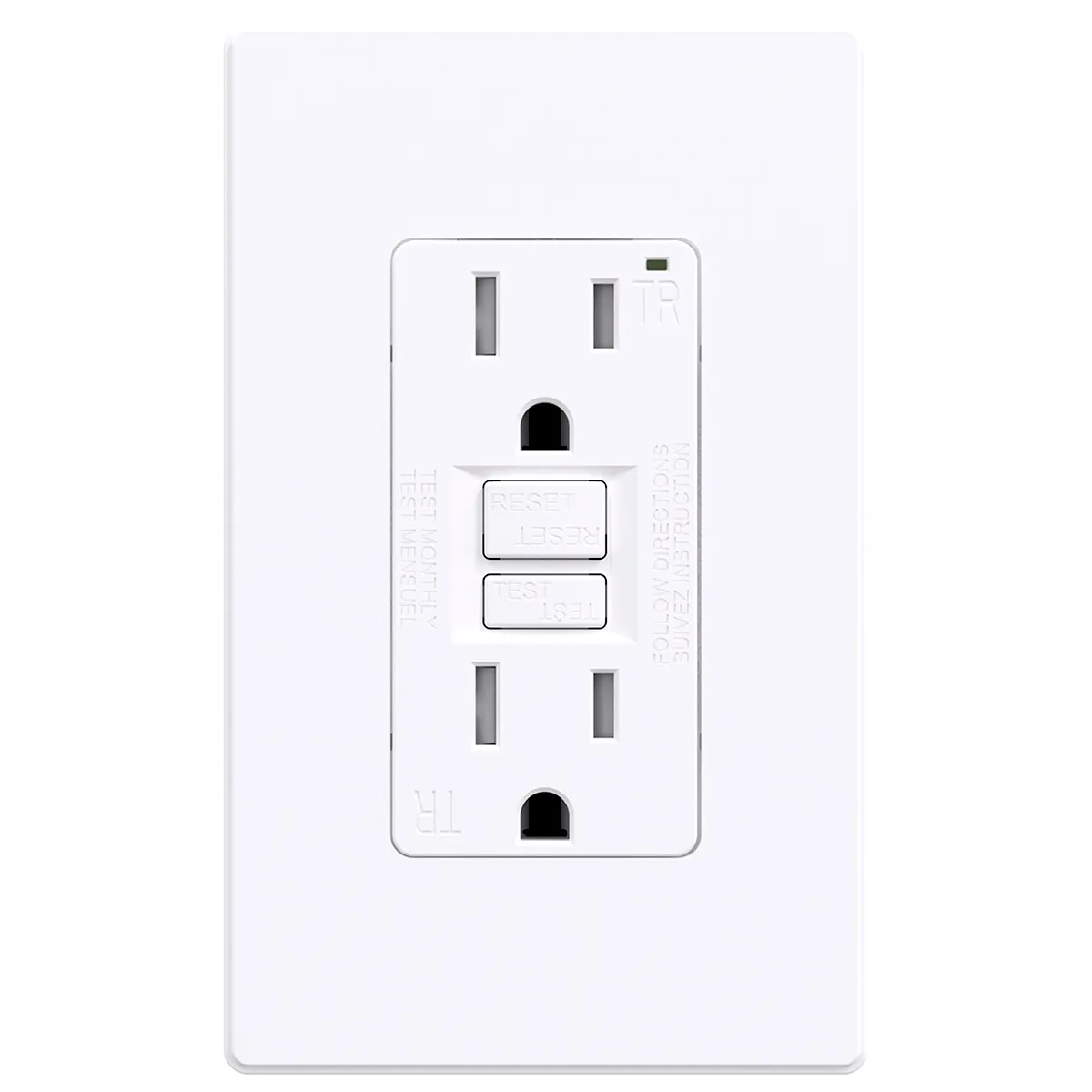 • Decora GFCI Receptacle with Wall Plate T/R 15Amp White