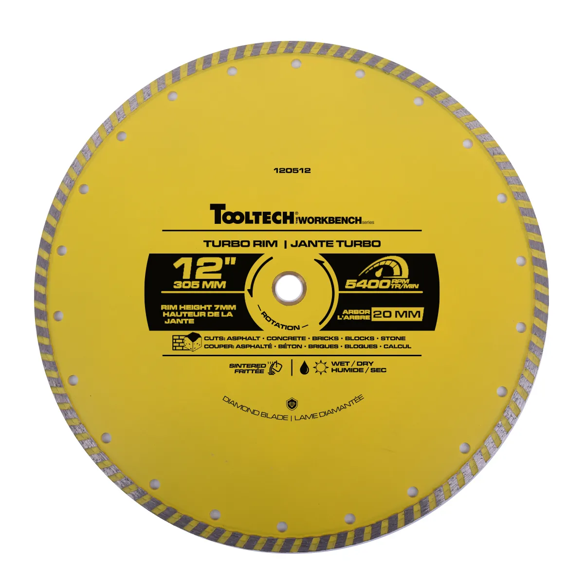 Sintered Turbo diamond saw blades have good life and are perfect for clean cuts in Brick, Block, Granite, Porcelain, Concrete.