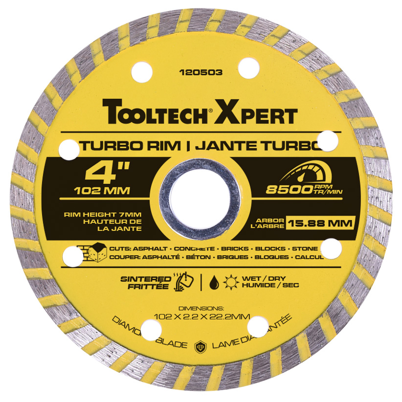 Sintered Turbo diamond saw blades have good life and are perfect for clean cuts in Brick, Block, Granite, Porcelain, Concrete.