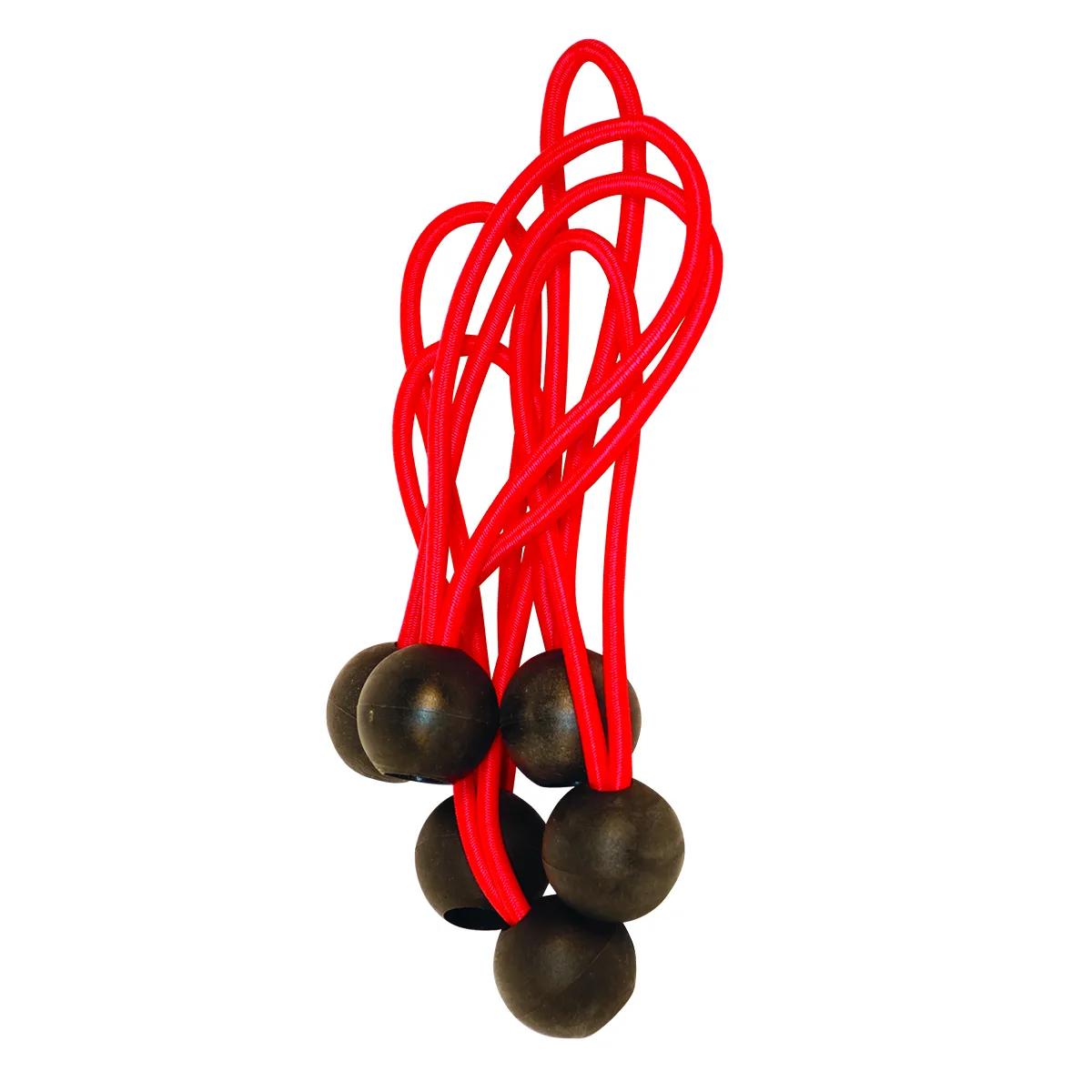 6PK Bungi Cord 10mm x 12in Push and Hook Red