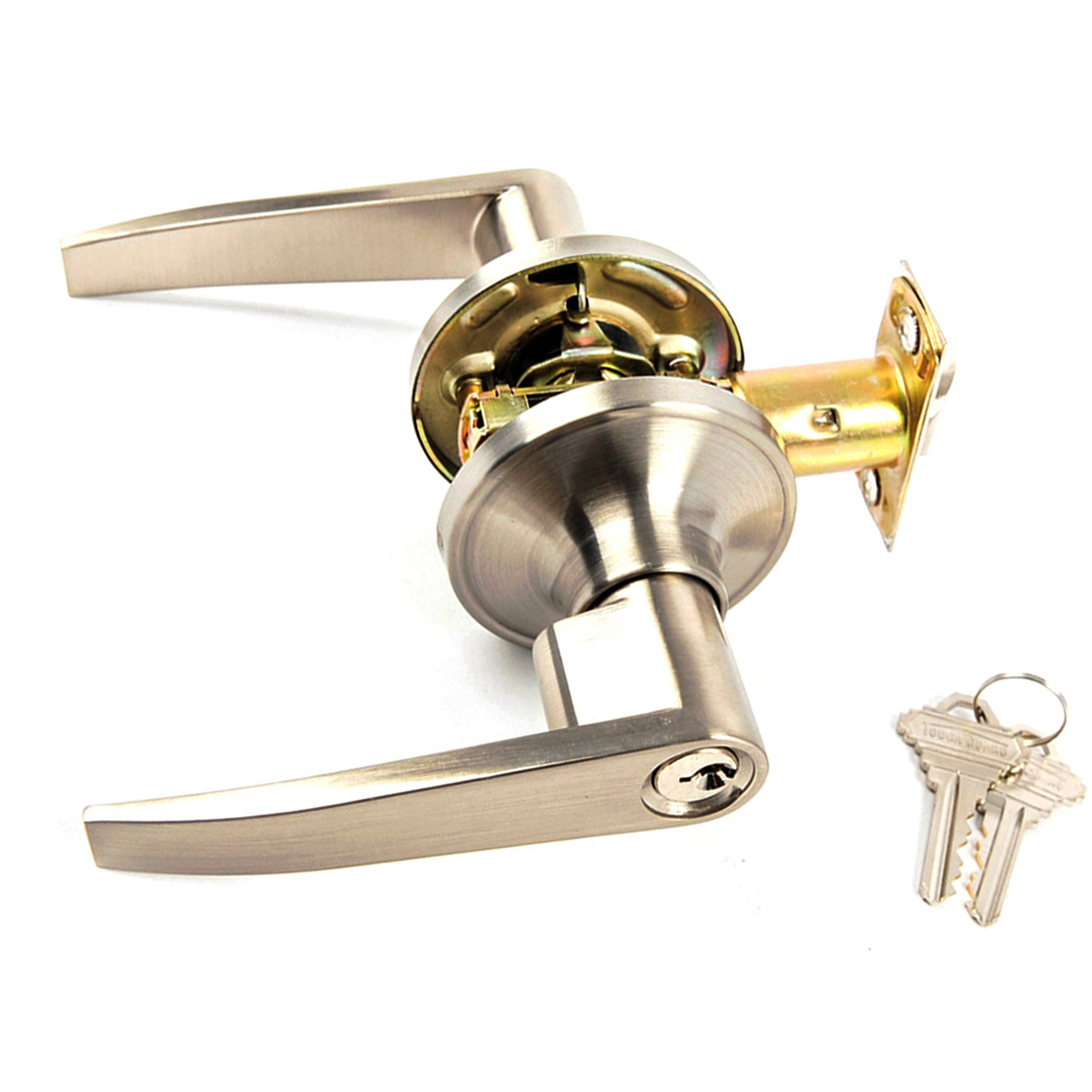 Tubular lock fits most door thicknesses 1-3/8in - 1-3/4in.