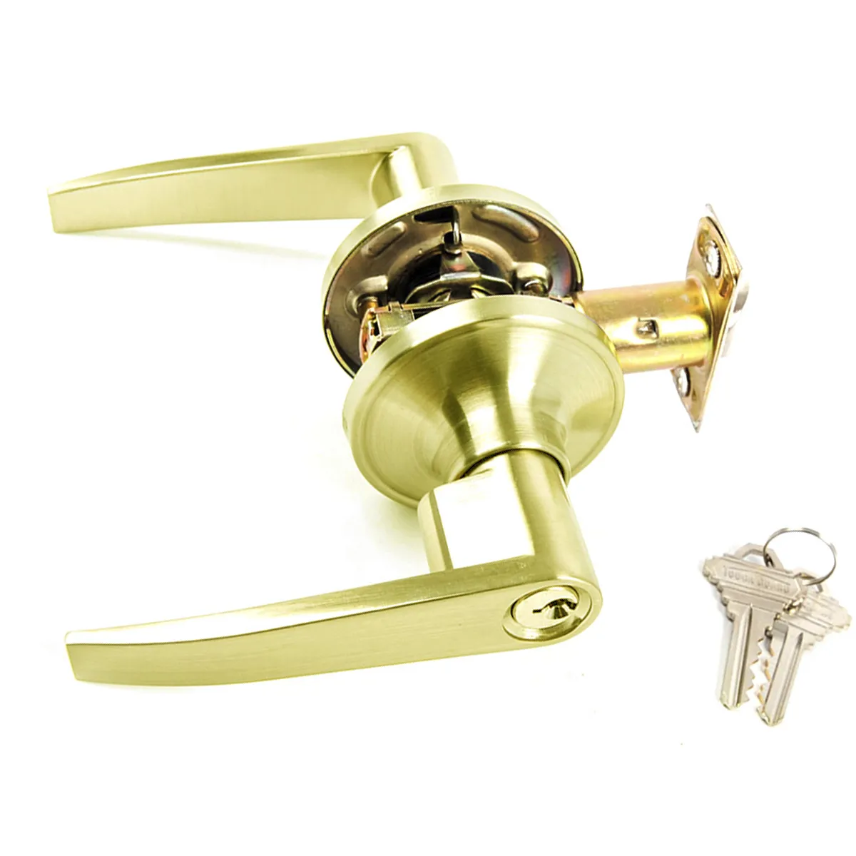 Door Lock Lever Entry Polished Brass