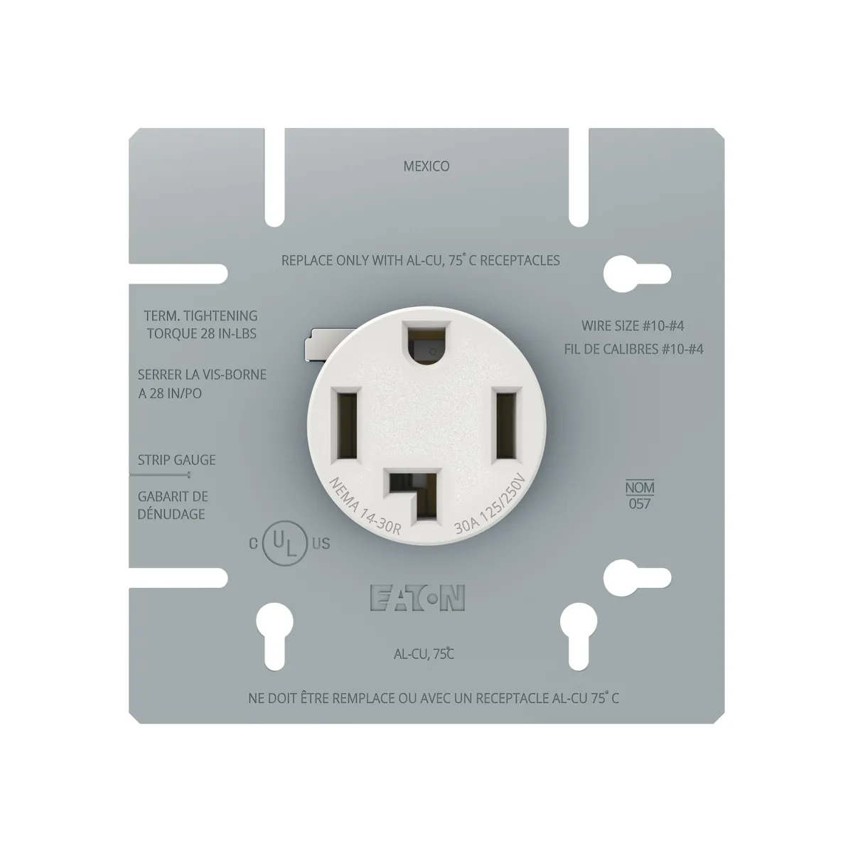 Dryer Receptacle with Metal Plate 30A - 125/250V