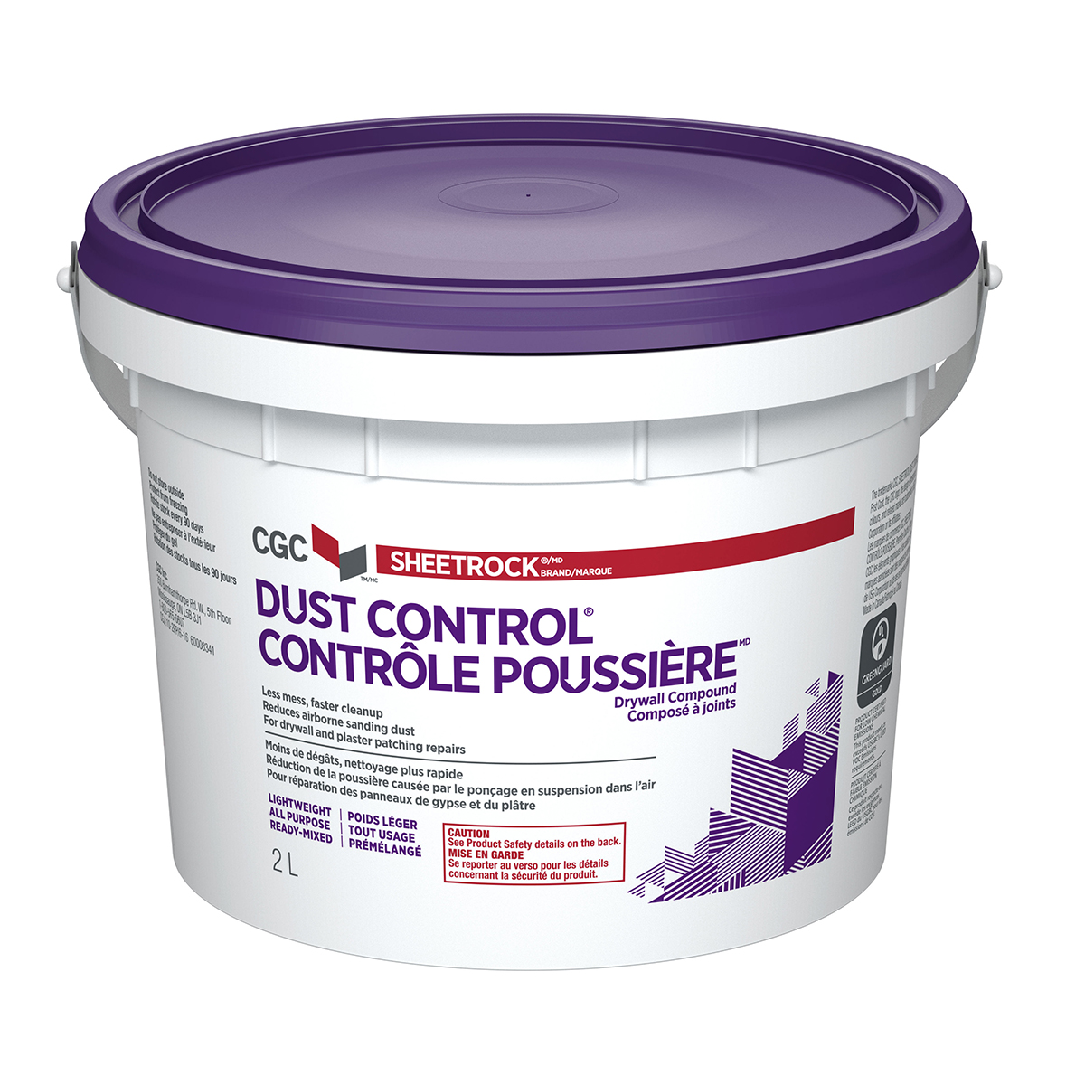 CGC Sheetrock® Brand Dust Control® Drywall Compound is a revolutionary product that reduces the mess associated with sanding drywall compound. CGC Sheetrock® Brand Dust Control® Drywall Compound goes on the wall as well or better than other leading drywall compounds; with the added value that when sanding most of the dust falls straight to the floor and doesn't float around in the air. It is an all purpose compound that can be used to embed tape; fill and finish gypsum panels; bead; trims and fasteners. It can also be used for skim-coating over dry and non-glossy surfaces.