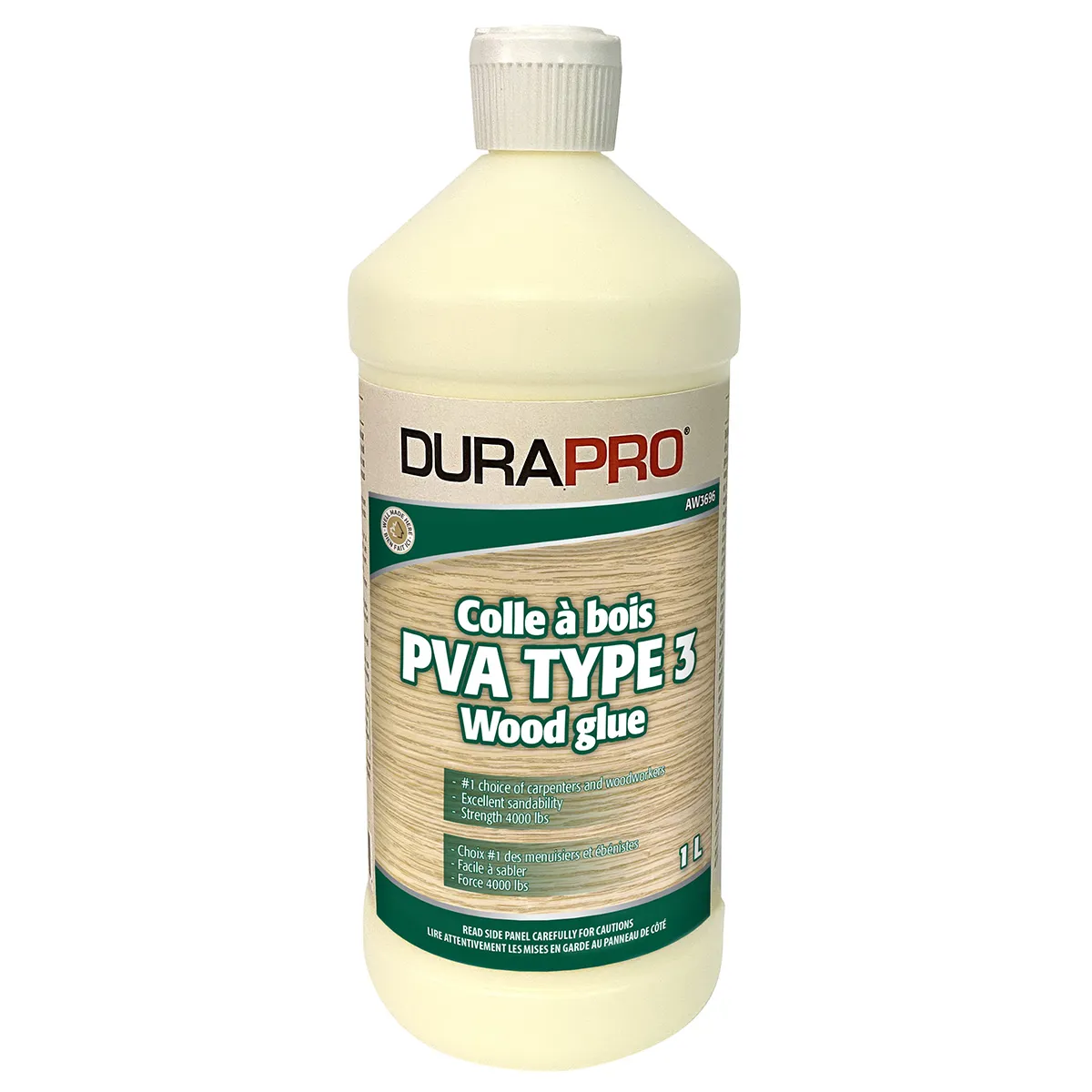 DURAPRO AW3696 is a polyvinyl acetate based adhesive designed for cabinets; furniture; carpentry work and other indoor wood gluing projects. It has an excellent initial grip and reduced slip during assembly. Forms strong bonds on hardwood; softwood; plywood; natural wood composites; MDF; cardboard and other porous materials.