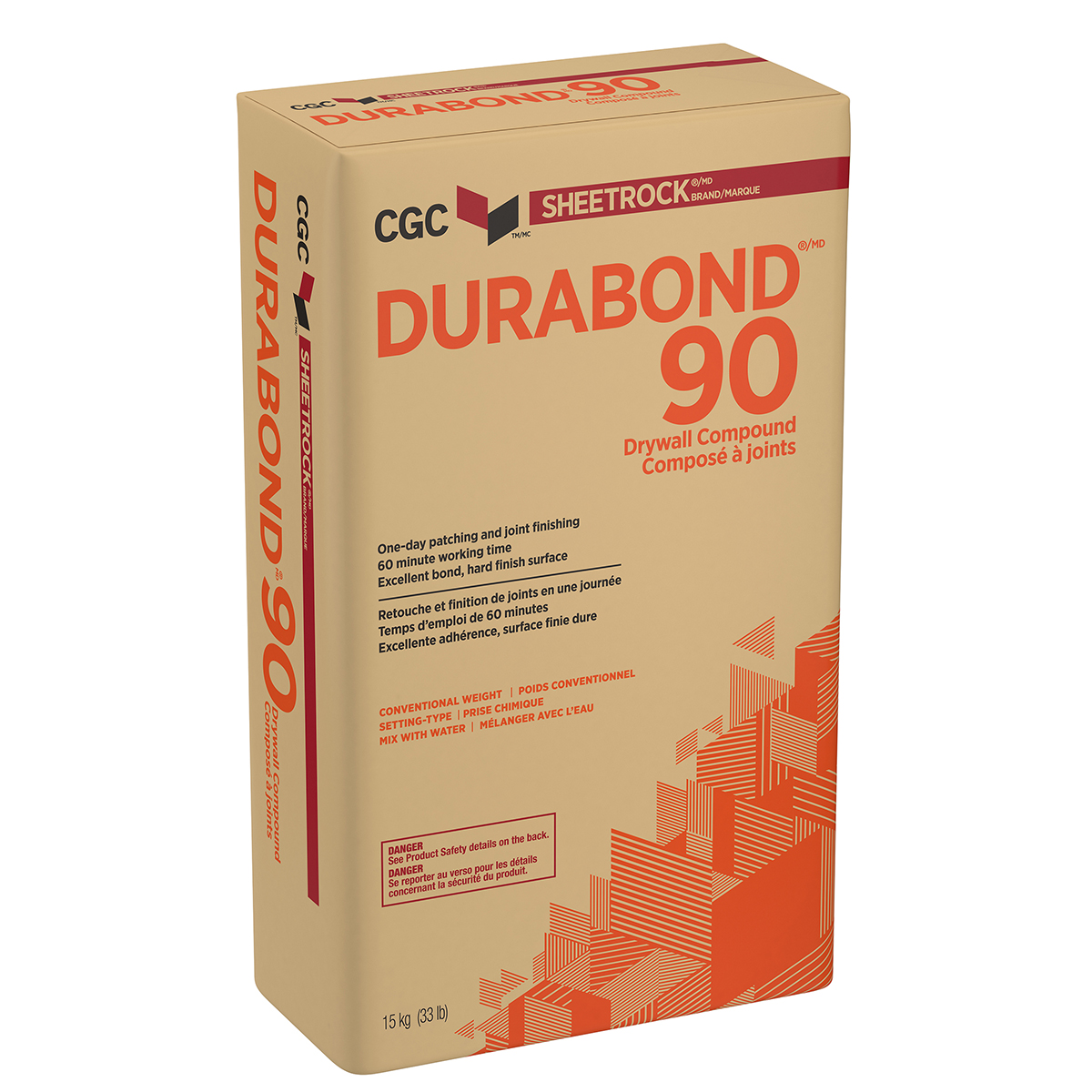 CGC Sheetrock® Brand 90 Setting-Type Drywall Compound is an excellent compound for embedding tape; bead and trims. Its special formulation provides a lightweight product that has a superior bond; permits same-day joint finishing and is easy to handle and sand. It is ideal for heavy fills and is virtually unaffected by humidity. Heavy-duty strain relief.