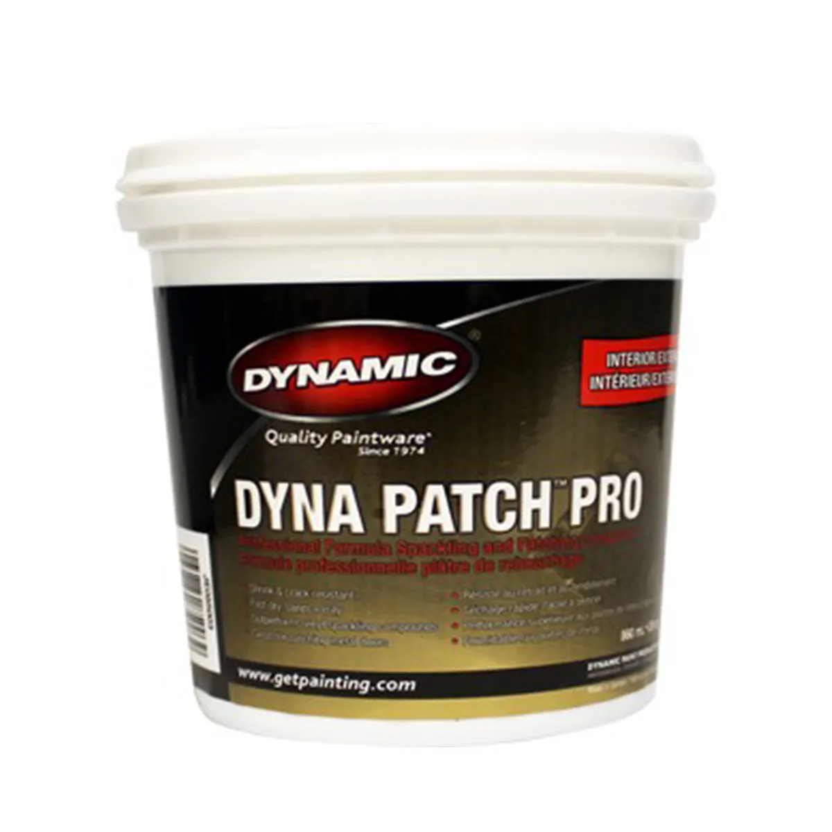 DYNAMIC JE085003 860 ml Dyna patch pro spackling compound is a professional formula spacking and patching compound. It shrinks and crack resistant; fast dry and sands easily. Dyna patch pro spackling compound out performs vinyl spacking compounds. This product is great for patching metal doors.
