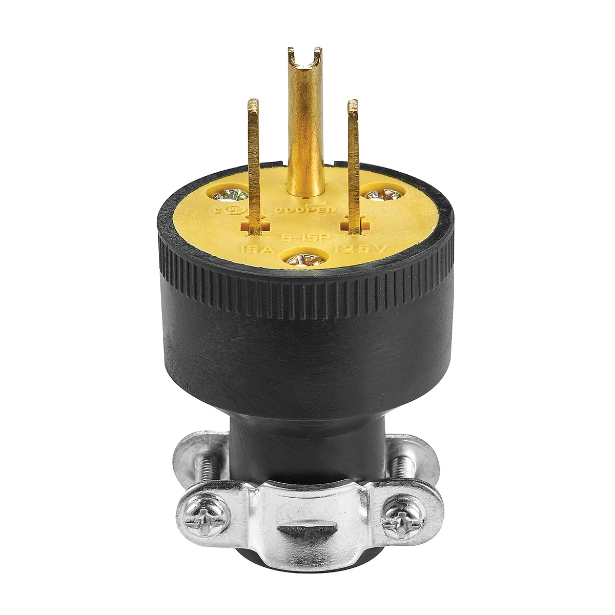 Solid brass plug blades are firmly embedded in body.
