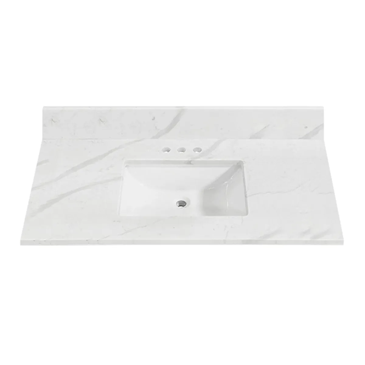 Eng. Marble Top Rectangle Undermount Sink 31in x 22in Wht/Gry