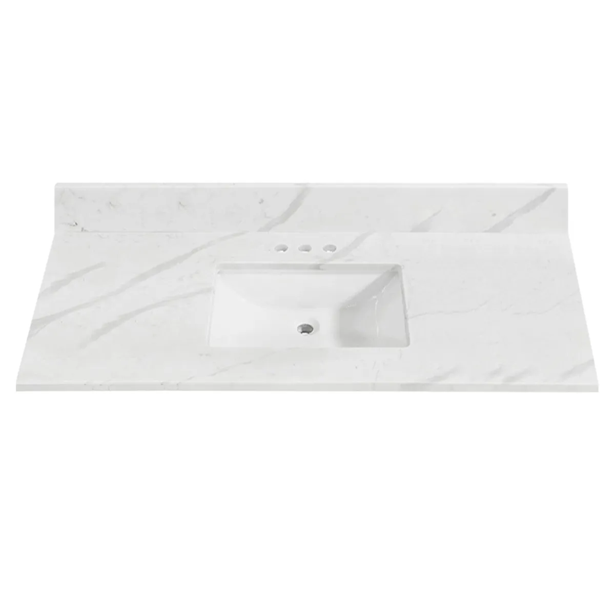 Eng. Marble Top Rectangle Undermount Sink 49in x 22in Wht/Gry