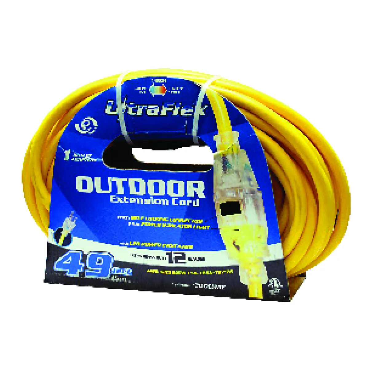 The FlexiCord Outdoor 10/3 Heavy Duty Extension Cord is a premium-built cord for contractors and serious DIYers who demand performance in any conditions. The extra-durable yellow PVC jacket provides high visibility, water resistance, and flame retardancy, while self-locking connector ends keep the connection secure. LED power indicator ends provide instant confirmation of live power. The cord is extremely flexibility in any temperature ranging from -40°C (-40°F) to +60°C (+140°F) meaning this cord performs year-round.