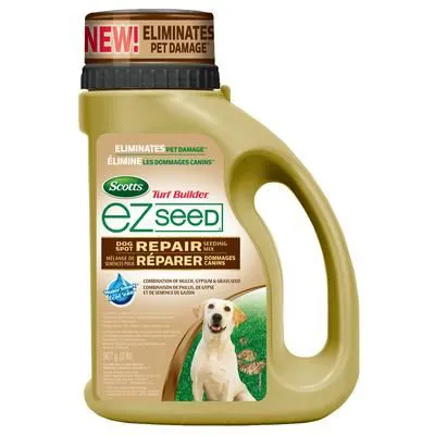 • Super-absorbent growing material expands to help keep grass seed moist for germination Love your lawn as well as your dog with Scotts® Turf Builder® EZ seed dog spot repair. This seeding mix contains Scotts best grass seed; plus gypsum to help repair areas in your lawn burned by dog urine.