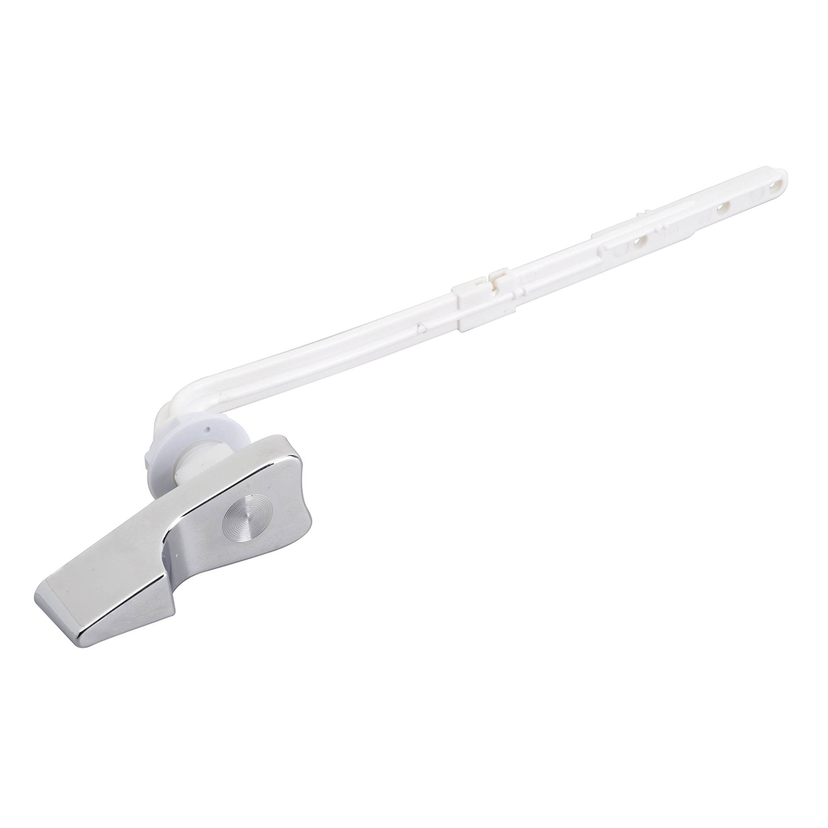 Lever Am Universal Fit-All™. Your best choice if you are unsure of correct fit. It is Chrome plated plastic handle. Bendable tank lever to fit side; angle and front mount toilets. 8 inch plastic arm with nut.