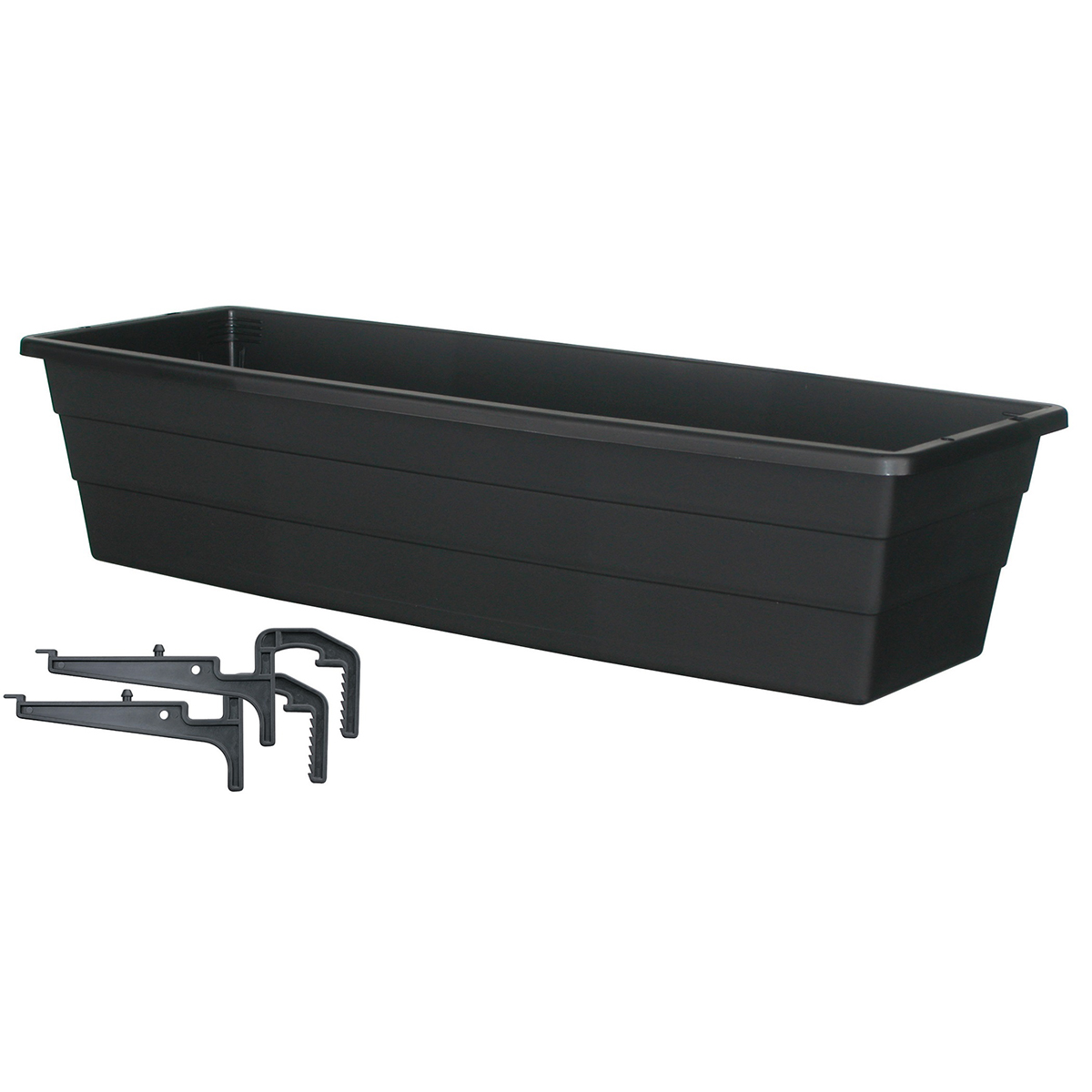 Futura Window Box Planter Plastic With Brackets 18x6.75x4.5in Black