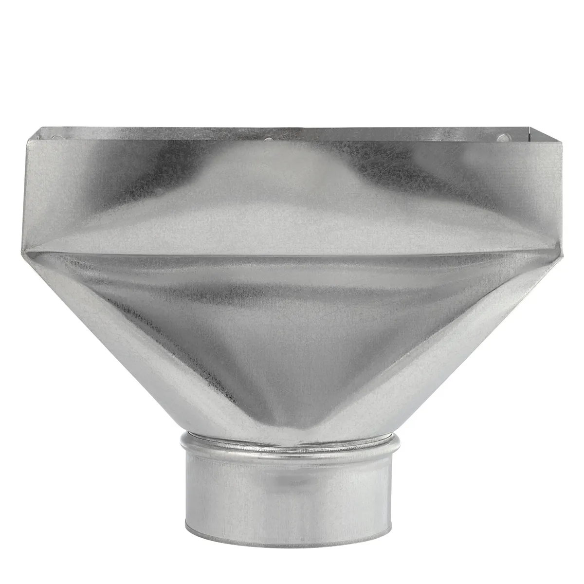 Used for in-line transition from round pipe or insulated flexible duct to a register or grille.