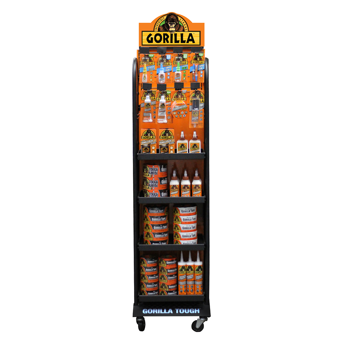 Heavy-duty metal display rack designed for Gorilla product merchandising.