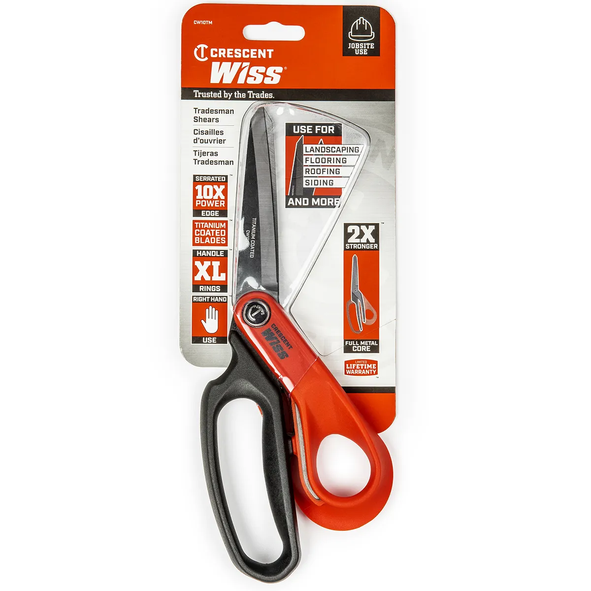 Crescent Wiss® Tradesman Shears feature premium-grade steel blades that extend through the handles for twice the strength and ten times the cutting power of standard shears.
