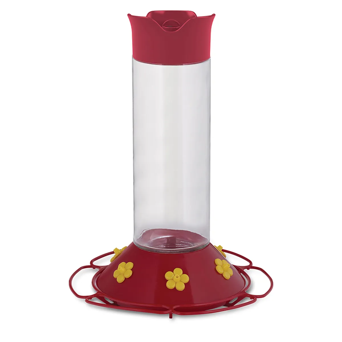 The Perky-Pet Our Best Hummingbird Feeder promises hours of hummingbird-watching pleasure and is perfect for any bird lover. With a large 30 oz nectar capacity, this glass hummingbird feeder will assure there’s always enough nectar to go around. The clear glass makes it easy to monitor nectar levels at a glance, while the red accents will attract birds to the feeder. Designed with a wide-mouth bottle, this feeder is incredibly easy to fill and clean. The six feeding ports are paired with a U-shaped perch so birds can rest while they dine. For insect defense, this feeder boasts built-in bee guards in every port and a built-in ant moat that can be filled with water to keep ants out of the nectar. For your convenience, this feeder can be taken completely apart to ensure easy cleaning.