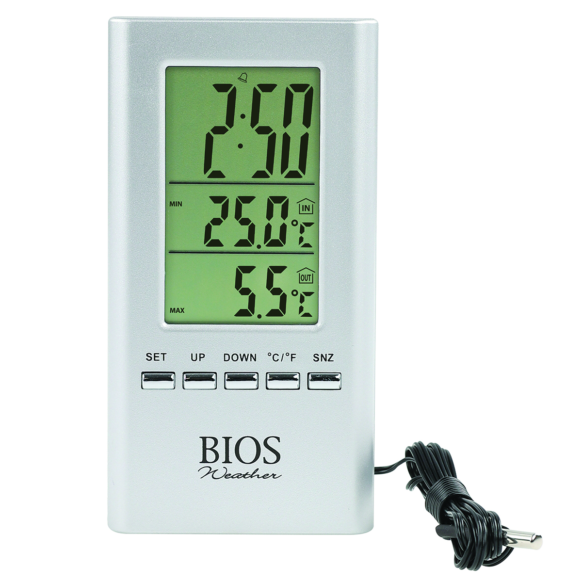 Stay connected to your home environment with this Digital Wireless Indoor/Outdoor Thermometer; designed to keep life simple and comfortable. With a clear display that shows the time; date; and temperature; it’s a handy companion for busy households. The built-in alarm makes it perfect for use on a bedside table; kitchen counter; or home office; keeping you on schedule while helping you keep an eye on the weather. The thermometer can be hung on the wall or placed on a tabletop stand; giving you the flexibility to use it wherever it fits best in your home. An outdoor sensor wirelessly transmits temperature readings straight to the indoor station; so you’ll always know when to grab a jacket before stepping out the door. Ready to use right out of the box; this thermometer comes complete with 2 x AG10 batteries included.