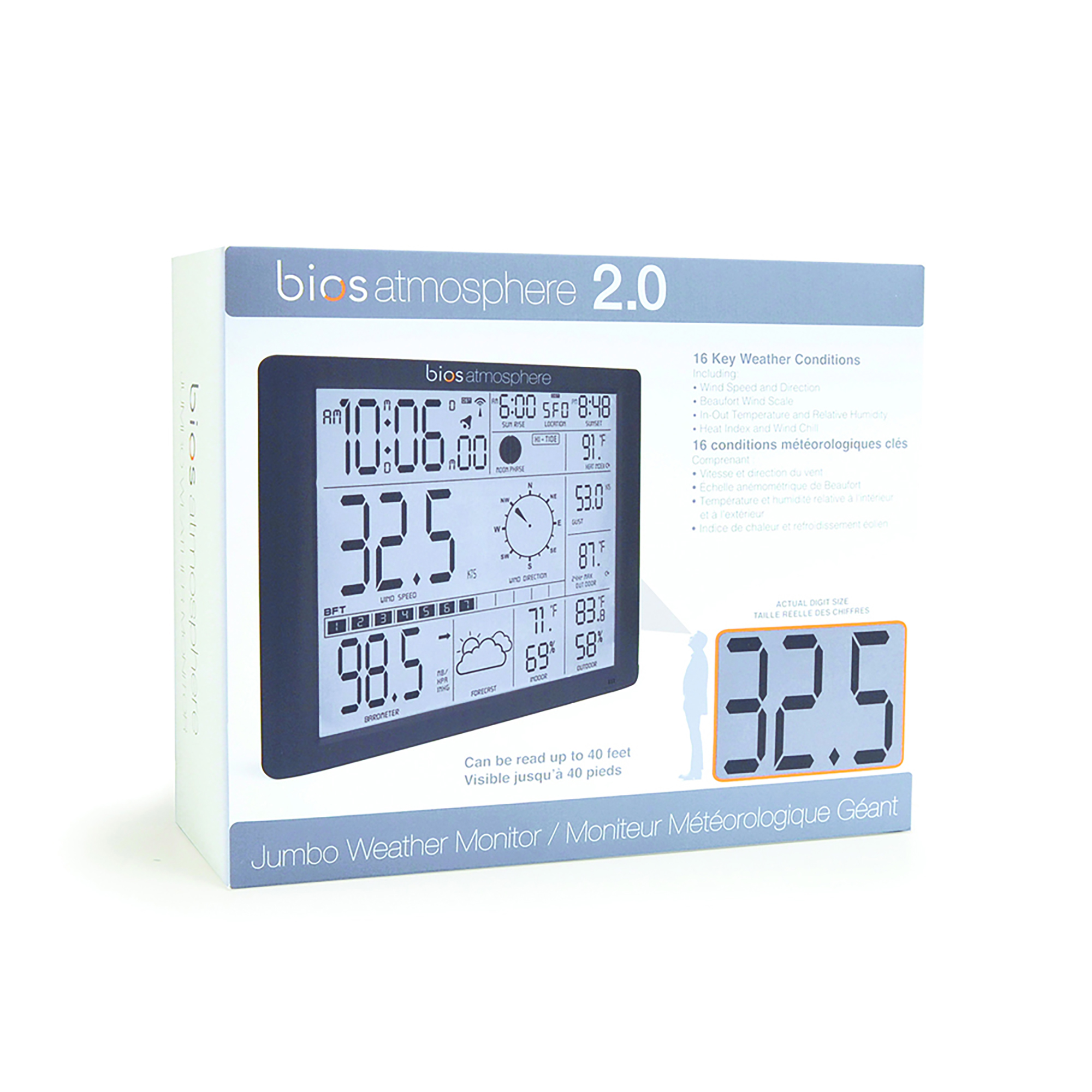This weather station has the largest LCD screen on the market. At 15in x 13in / 38.1 cm x 33 cm this unit displays 14 key weather conditions.