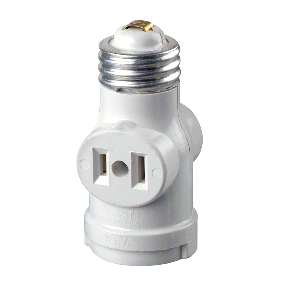 Lamp Socket Keyless Adapter For 1 Socket + 2 Outlets White