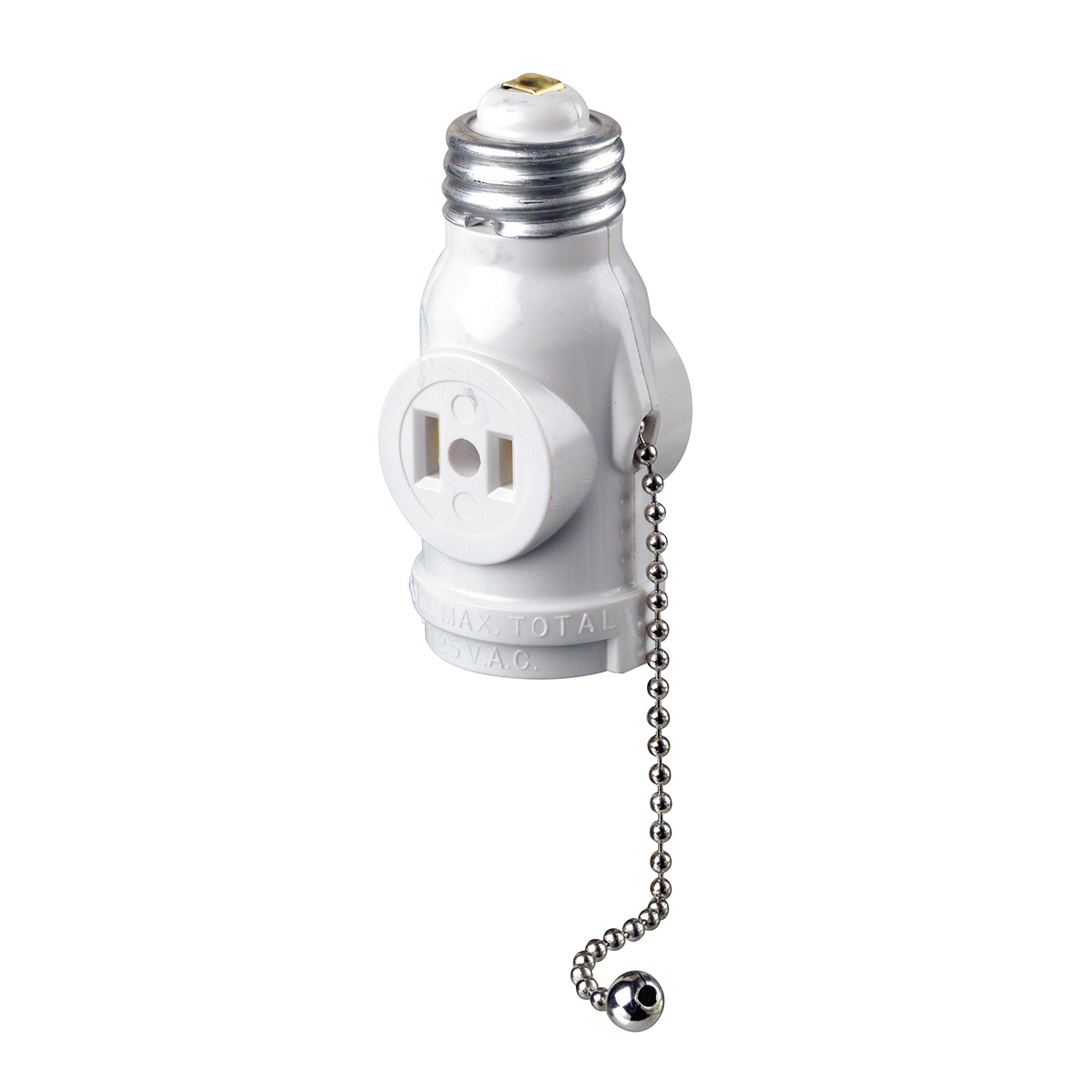 Lamp Socket Pull Chain Adapter For 1 Socket + 2 Outlets White