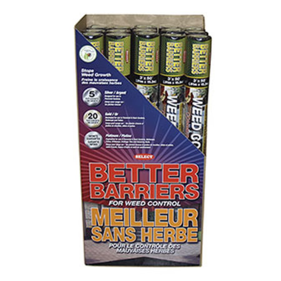 Better Barriers™ is Canada’s leader in landscape fabrics. It is a strong; uniform fabric designed to stabilize and separate soil profiles and stop unwanted weed growth. At the same time; it allows air; water and nutrients to reach the roots of the desired plants.