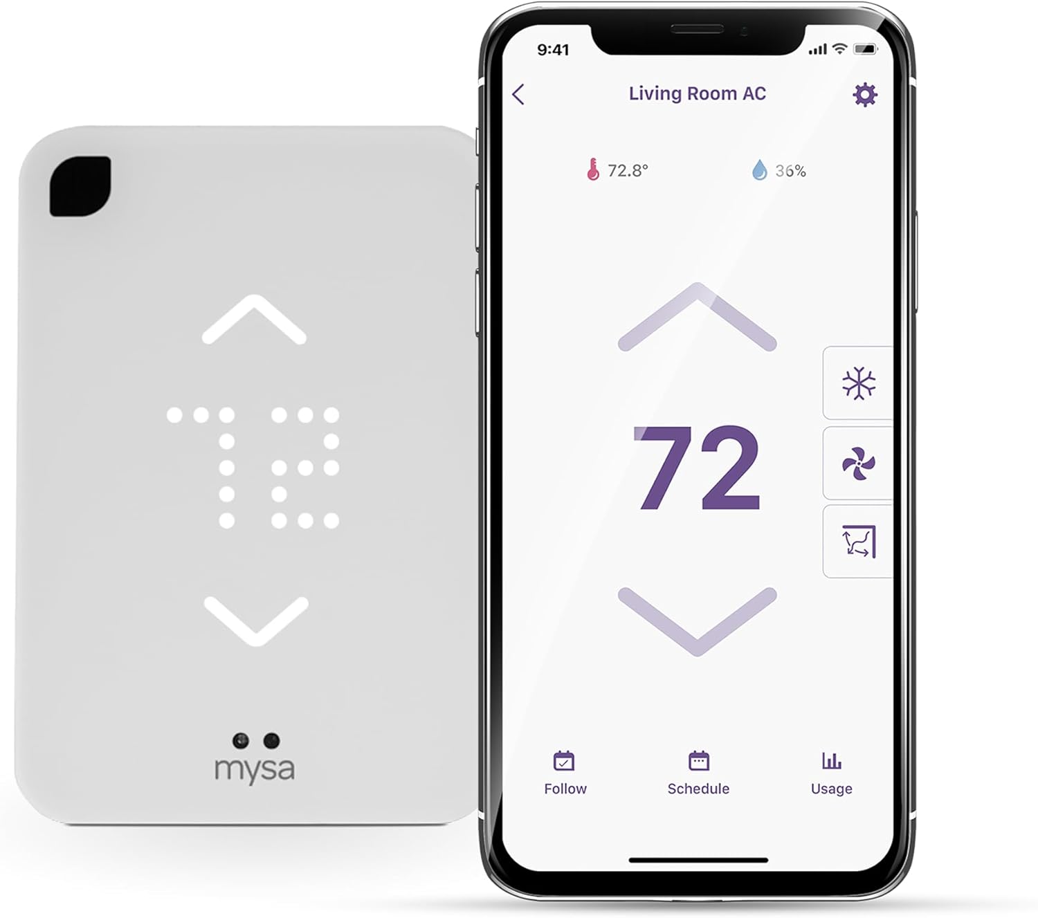 Simple on-thermostat control. Adjust set-point, change operation mode, turn on/off.