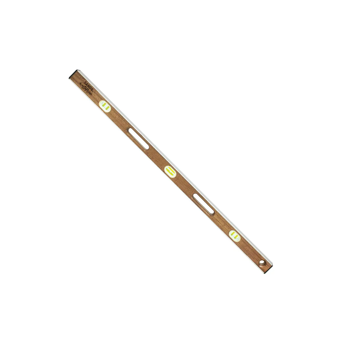 A heavy-duty Aluminum I-beam forms this frame of this extra strong level. The finest selection of mahogany wood is then added to the solid foundation on this 48in level; a favorite with masons. The wood has a strong; yet beautiful smooth finish. Six Cat's Eye Yellow double bent vials are solid set for accuracy. Double bent vials make leveling easier. The vials feature permanent lines that won't fade or wear away. The level is guaranteed accurate to 0.0004 in per in. The vials are protected by glass lenses to extend the life of the level. Shock absorbing rubber end caps are secured to the end of the level to stand up to wear and tear on the tool. Large hand holes provide comfort and ease when moving the level. A hang hole on one end allows for easy storage when not in use.